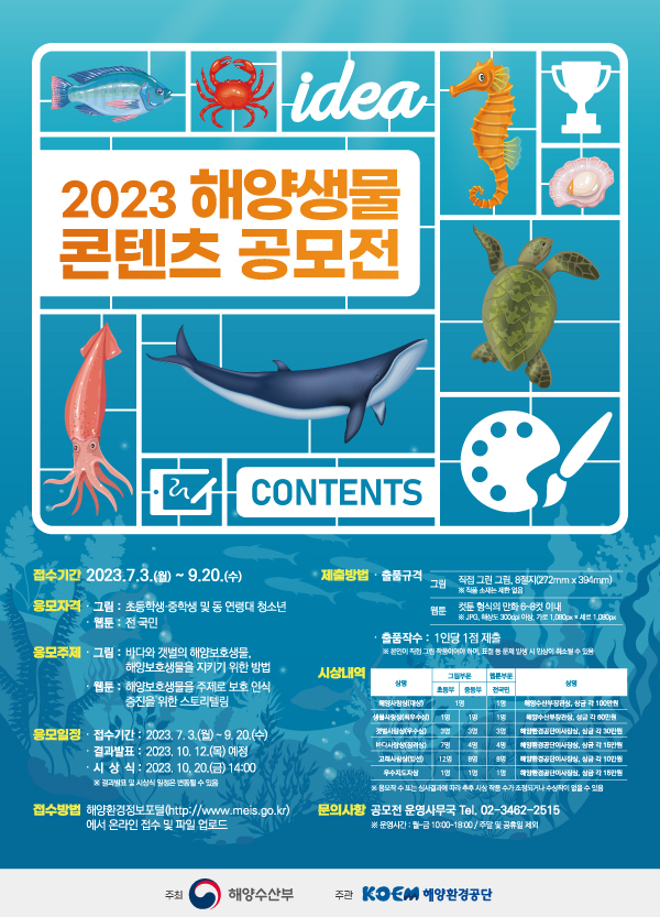 - ☏ 2023 해양생물콘텐츠공모전 운영사무국(02-3462-2515)