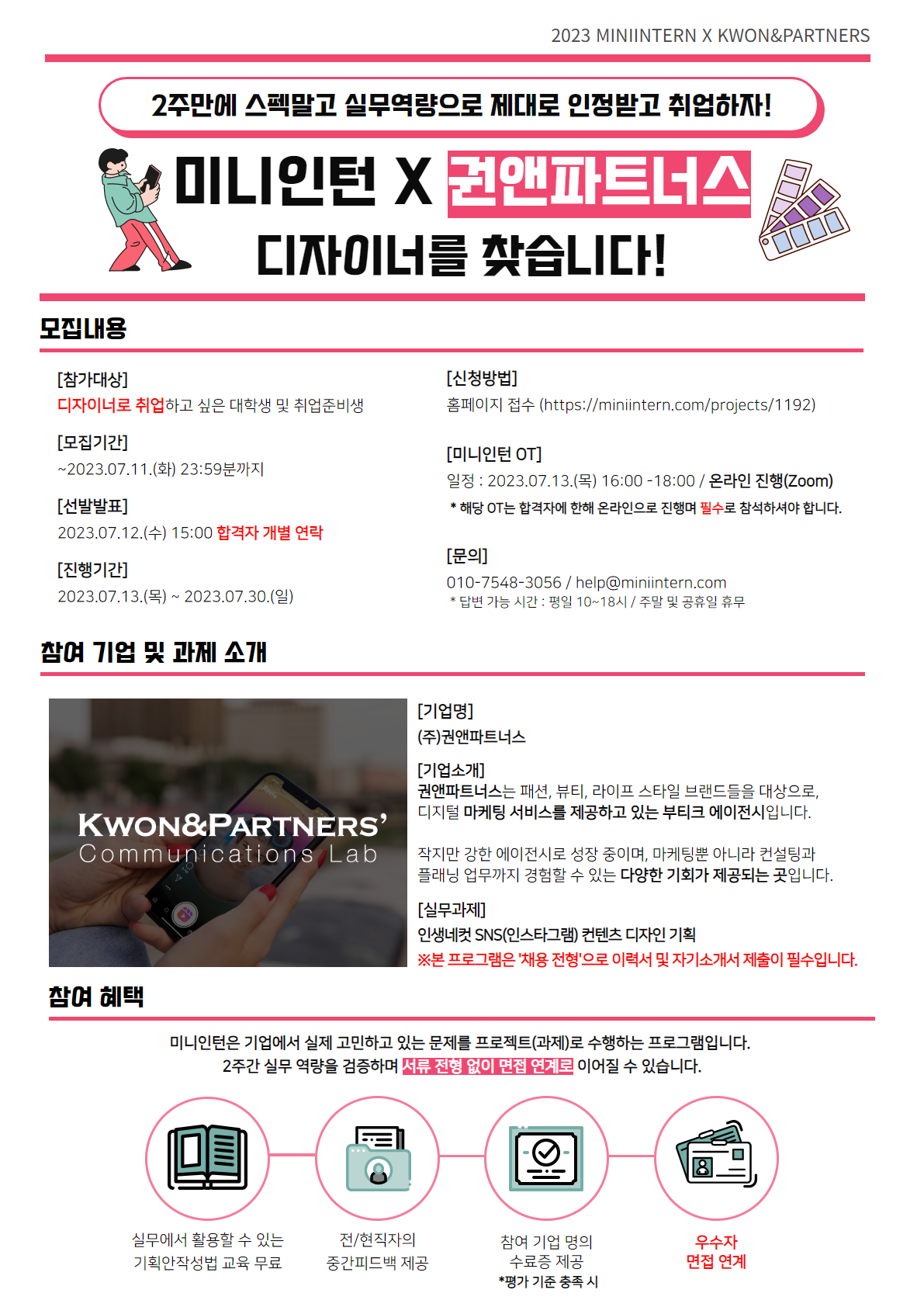 감각 있는 마케팅 에이전시 ‘권앤파트너스’에서 실무 경험을 통해 디자이너로 성장해 보세요!