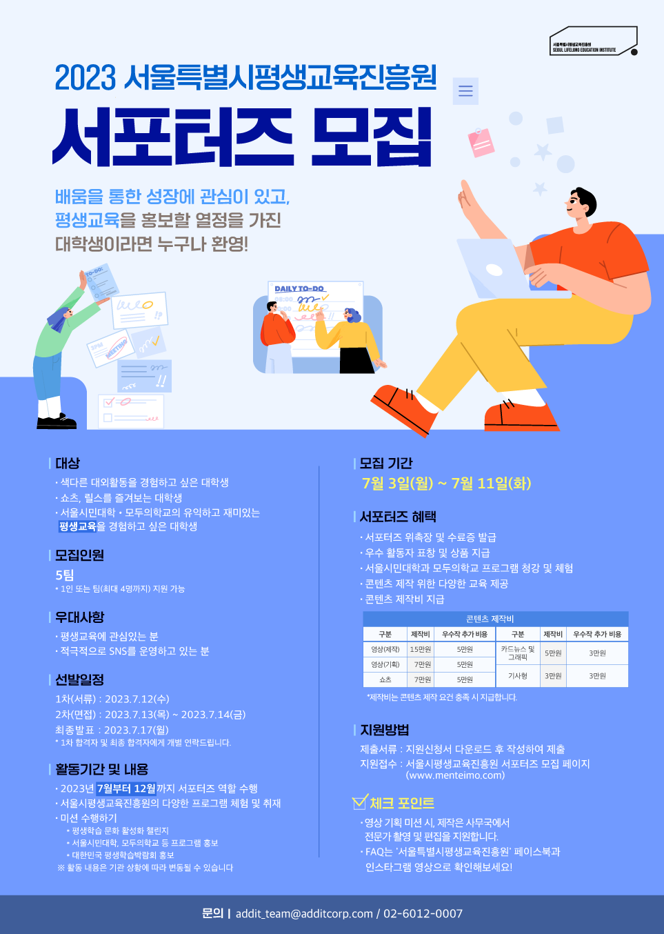 서울특별시평생교육진흥원 2023 서포터즈 모집