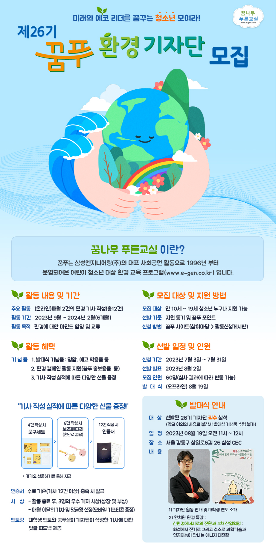 [삼성엔지니어링] 제26기 꿈푸 환경 기자단 모집(\~7.31)