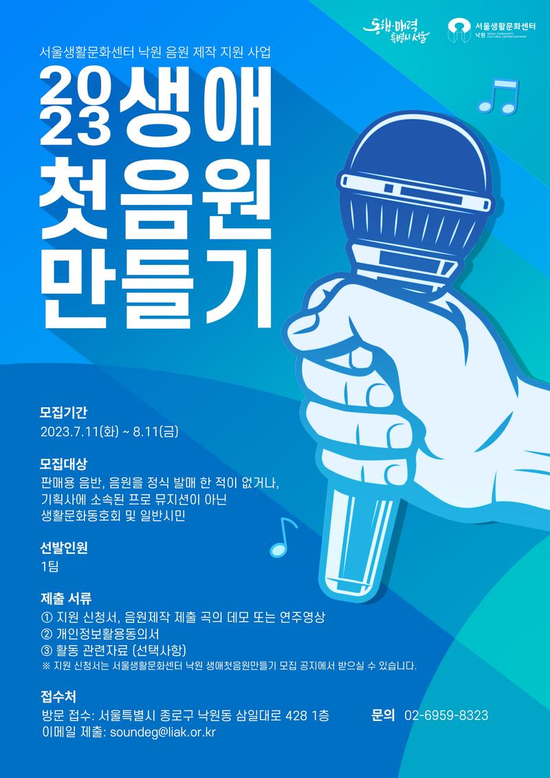 ▪️대상 - 판매용 음반, 음원을 정식 발매 한 적이 없는 생활문화동호회 및 일반시민.