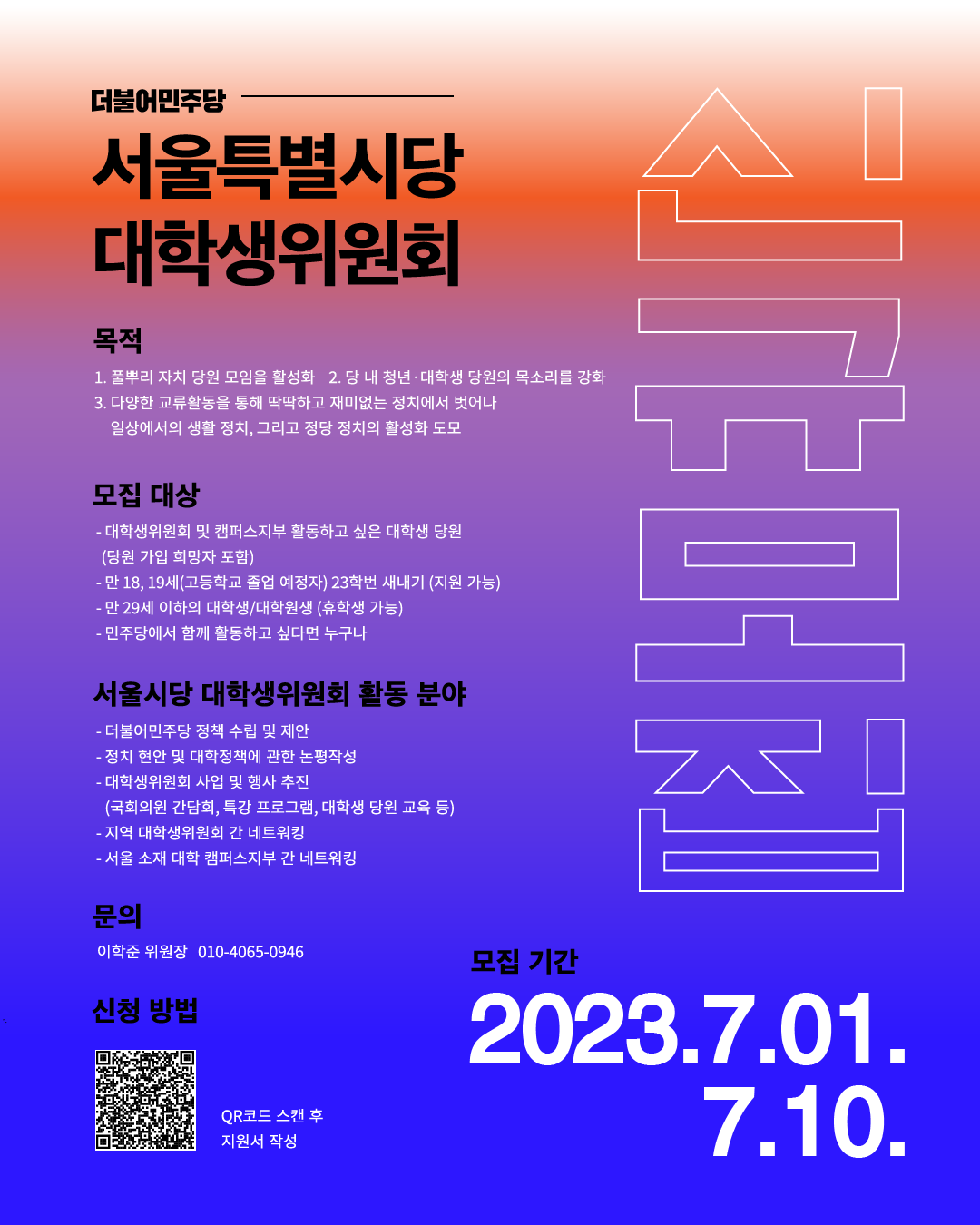 📌문의: 서울시당 대학생위원회 위원장 이학준 010-4065-0946