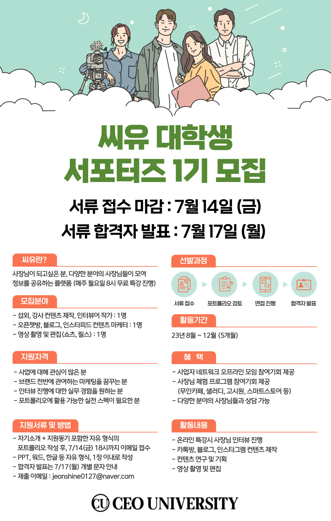- 최종 합격자 발표: 7/31 (월) *개별 문자 안내
