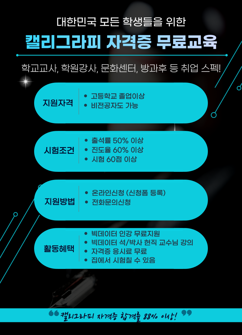 - 고등학교 졸업 이상은 누구나 신청가능