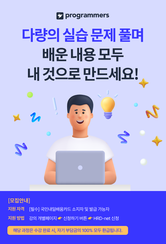 해당 과정은 수강 완료 시 자기 부담금의 100%가 환급됩니다.