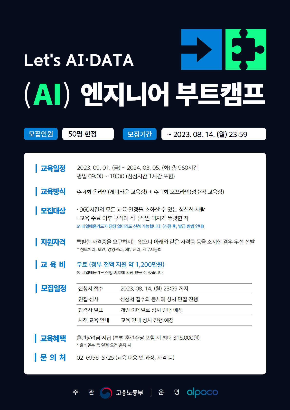 [무료 교육]대기업에서 모셔가는 AI 엔지니어! 올인원 특강부터 취업매칭까지 고연봉 AI 엔지니어 취업 부트캠프 (전액무료💸)