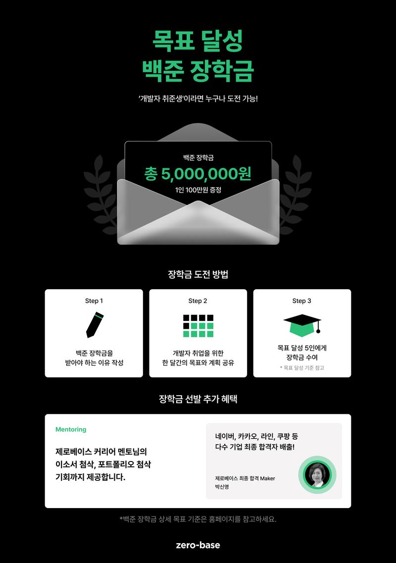 개발자 취업 준비하며 스펙도 쌓고, 백준 장학금 1,000,000원의 주인공도 되어보세요!