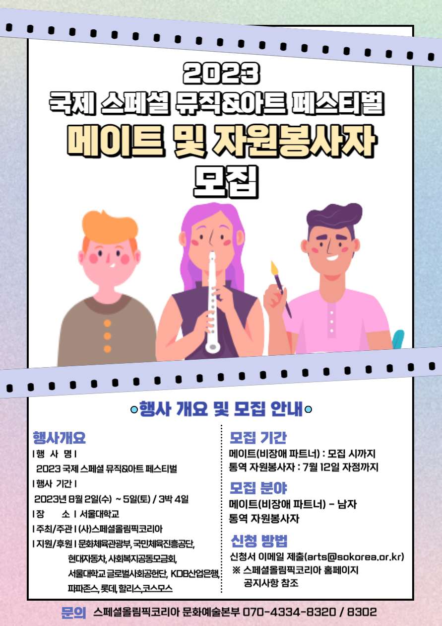 10.0pt;font-family:나눔고딕;mso-hansi-font-family:굴림;mso-bidi-font-family:굴림; color:black;mso-font-kerning:0pt">- (사)스페셜올림픽코리아에서 '2023 국제 스페셜 뮤직&아트 페스티벌'의 메이트(Mate) 및