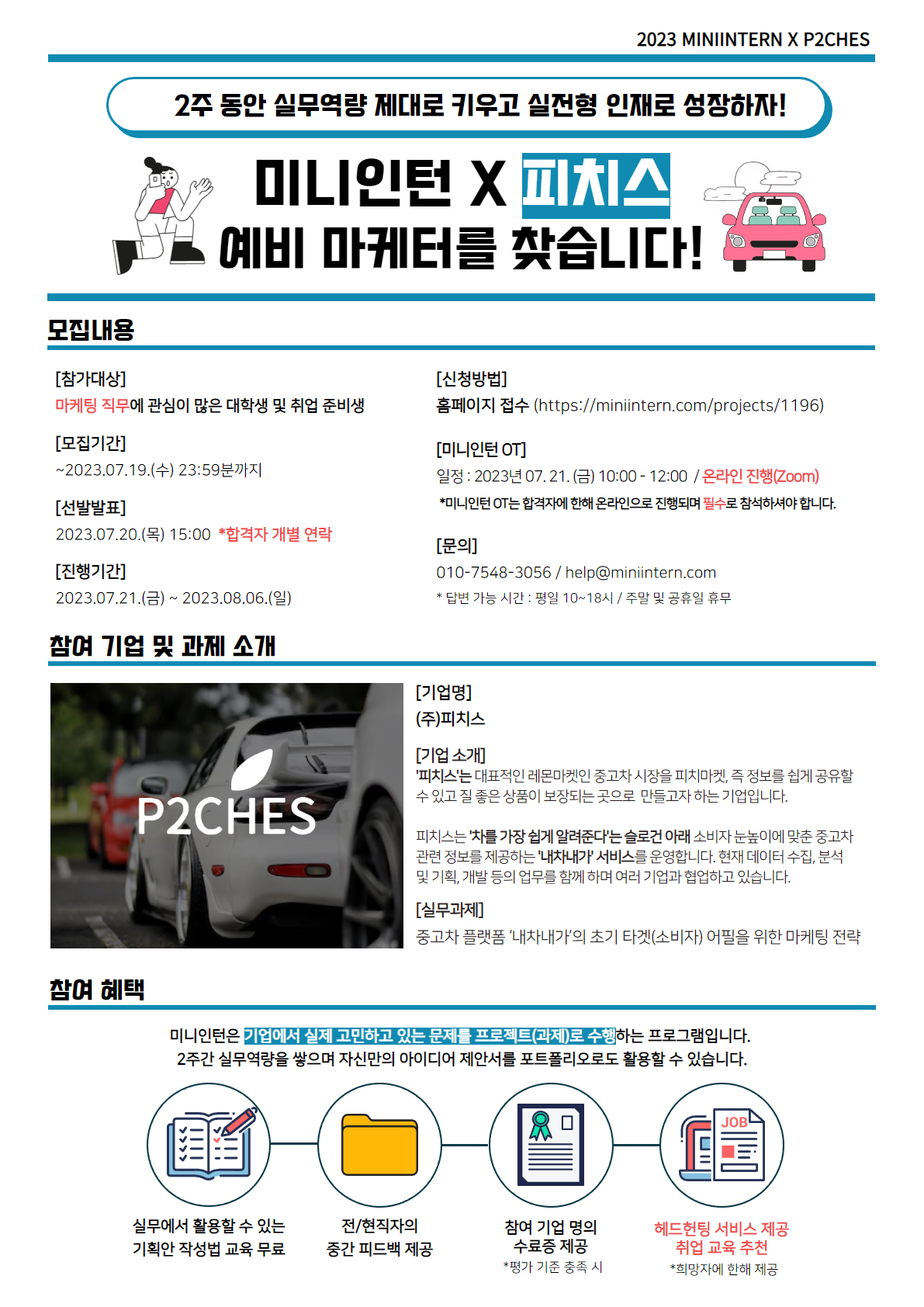 피치스의 ‘내차내가’의 마케팅 실무 경험을 통해