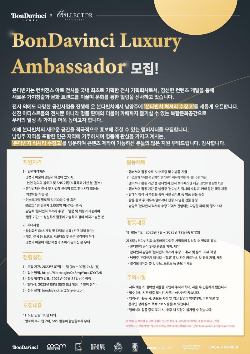 - 앰버서더 활동 기간 중 남양주 ‘본다빈치 럭셔리 수장고’ 카페 할인 혜택 제공