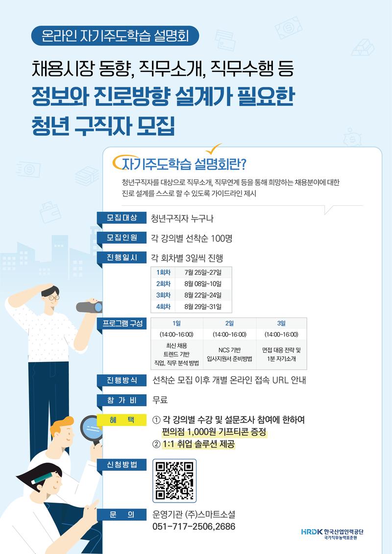 자기주도학습 설명회란? 청년구직자를 대상으로 직무소개, 직무연계 등을 통해 희망하는 채용분야에 대한 진로 설계를 스스로 할 수 있도록 가이드라인 지원하는 프로그램!