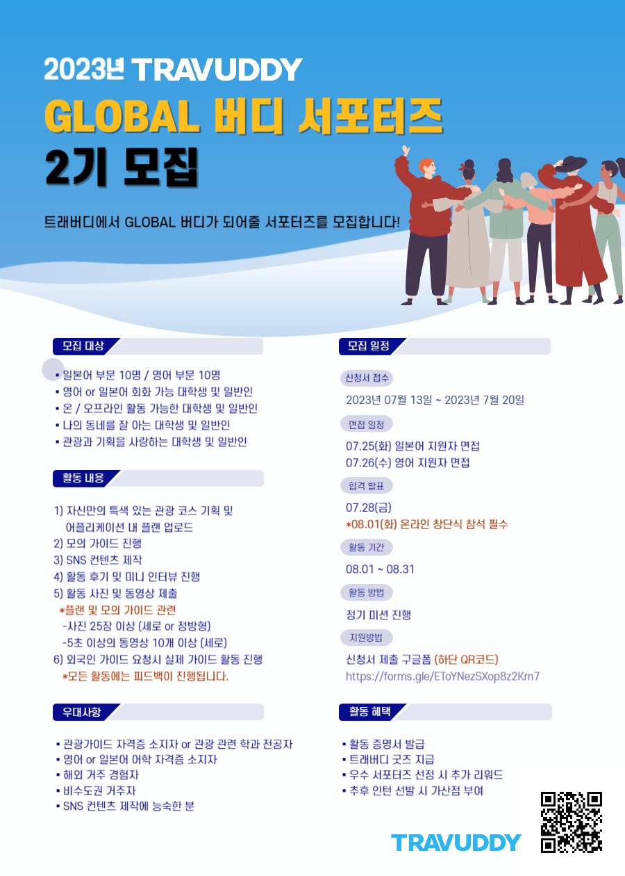 트래버디(TRAVUDDY)에서 GLOBAL 버디가 되어줄 서포터즈를 모집합니다!