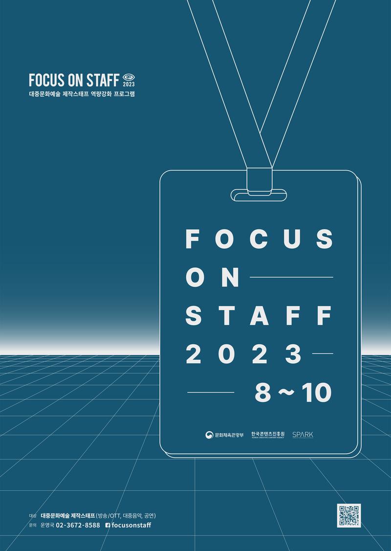 교육프로그램 개요 ▶ 일시 : 2023년 8월 7일(월) \~ 9월 12일(화) ▶ 장소 : 한국콘텐츠진흥원 역삼 공정상생센터 지하1층 (서울 강남구 논현로 525) ▶ 장소 : 한국콘텐츠진흥원 뉴콘텐츠기업지원센터 지하2층 (서울시 강남구 역삼로 217) ▶ 대상 : 대중문화예술 제작스태프 (방송/OTT, 대중음악, 공연) ▶ 교육방식 : 오프라인 강의 ▶ 교육비 : 무료 ▶ 지원방법 : 지원서 작성 http://www.focusonstaff.com ▶ 모집일정 : 6월 28일(수) \~ 7월 25일(화) ▶ 문의 : 운영국 02-3672-8588 ▶ 공식페이스북: https://www.facebook.com/focusonstaff