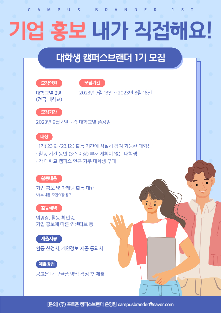 취업역량 강화와 아르바이트를 통시에, "캠퍼스브랜더 1기" 모집**