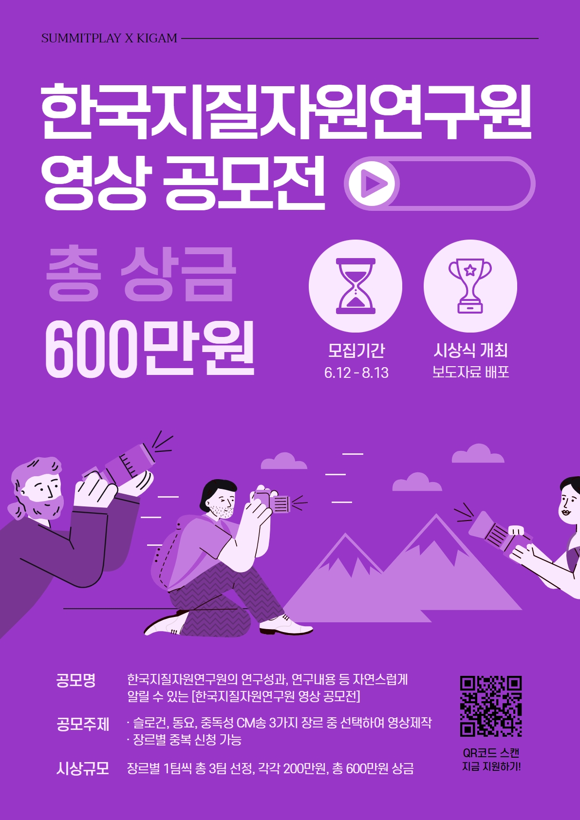 -한국지질자원연구원을 알리는 목적의 영상이여야 하며, 다큐멘터리 애니메이션 음악 비디오 등 제한된 형식없이 자유롭게 제작합니다.