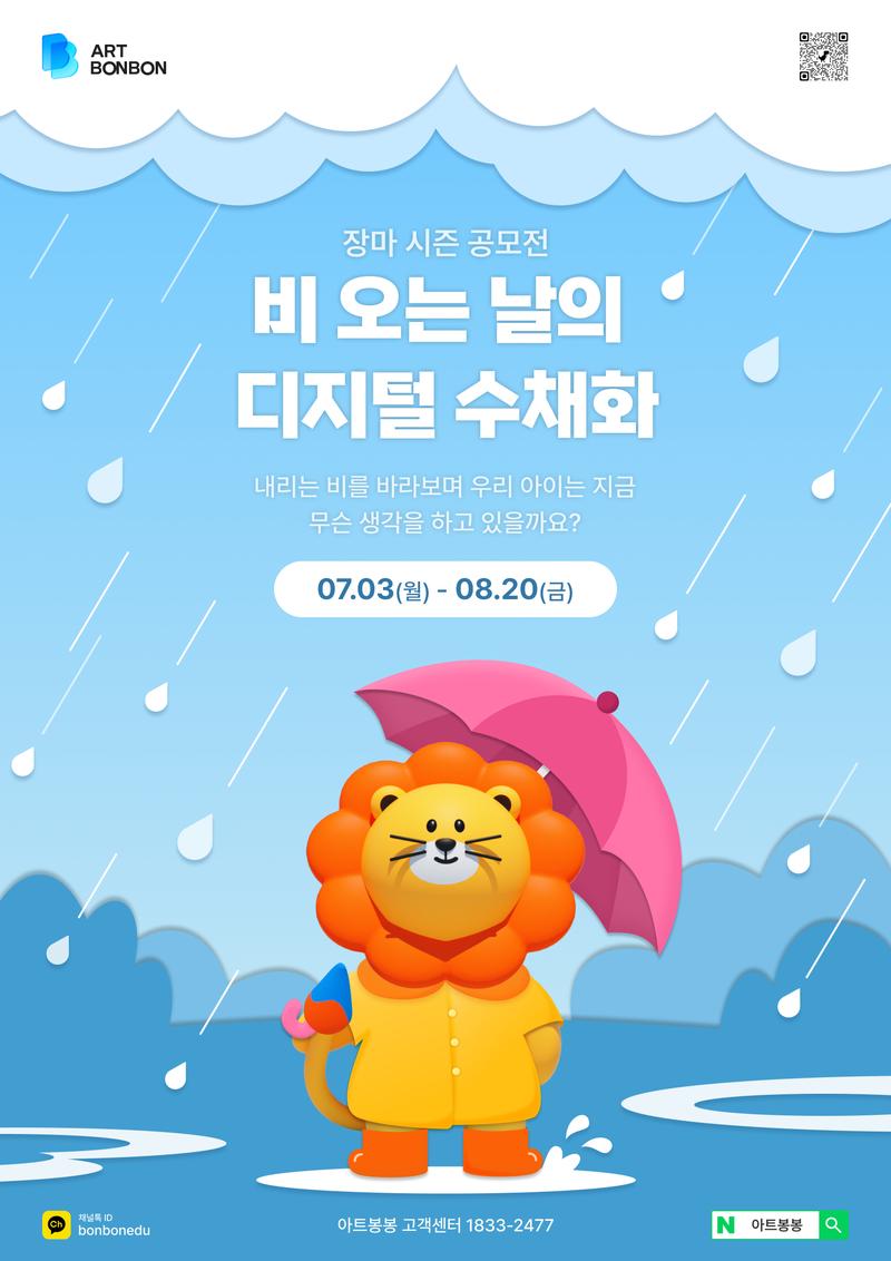 비 오는 날의 나는 무엇을 하고 있나요? 즐겁거나, 슬펐던 경험 등 여러분들의 "비 오는 날의 디지털 수채화"로 "비 속의 나"를 그려주세요. (반드시 아트봉봉으로 그릴 것)