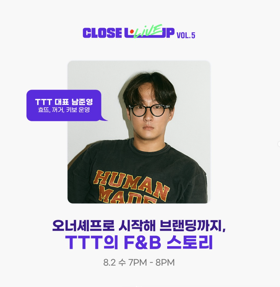 🔎[클로즈업] 라이브 VOL 5. '오너셰프로 시작해 브랜딩까지, TTT의 F&B 스토리'