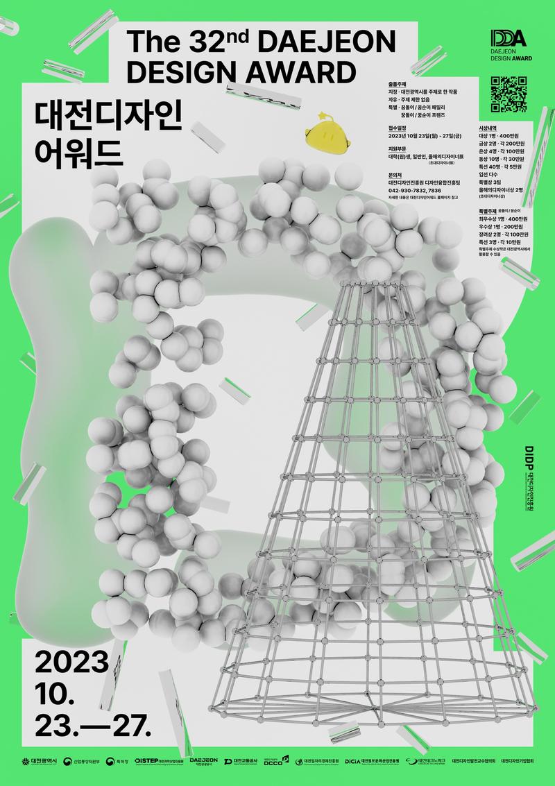(재)대전디자인진흥원에서는 지역의 디자인 수준 향상을 도모하고 미래의 역량 있는 신진 디자이너 발굴 및 중견 디자이너들의 자긍심 고취를 위해 ‘제32회 대전디자인어워드’를 개최하고자 합니다. 대한민국을 대표하는 디자이너, 학생 여러분들의 많은 관심과 참여를 부탁드립니다.