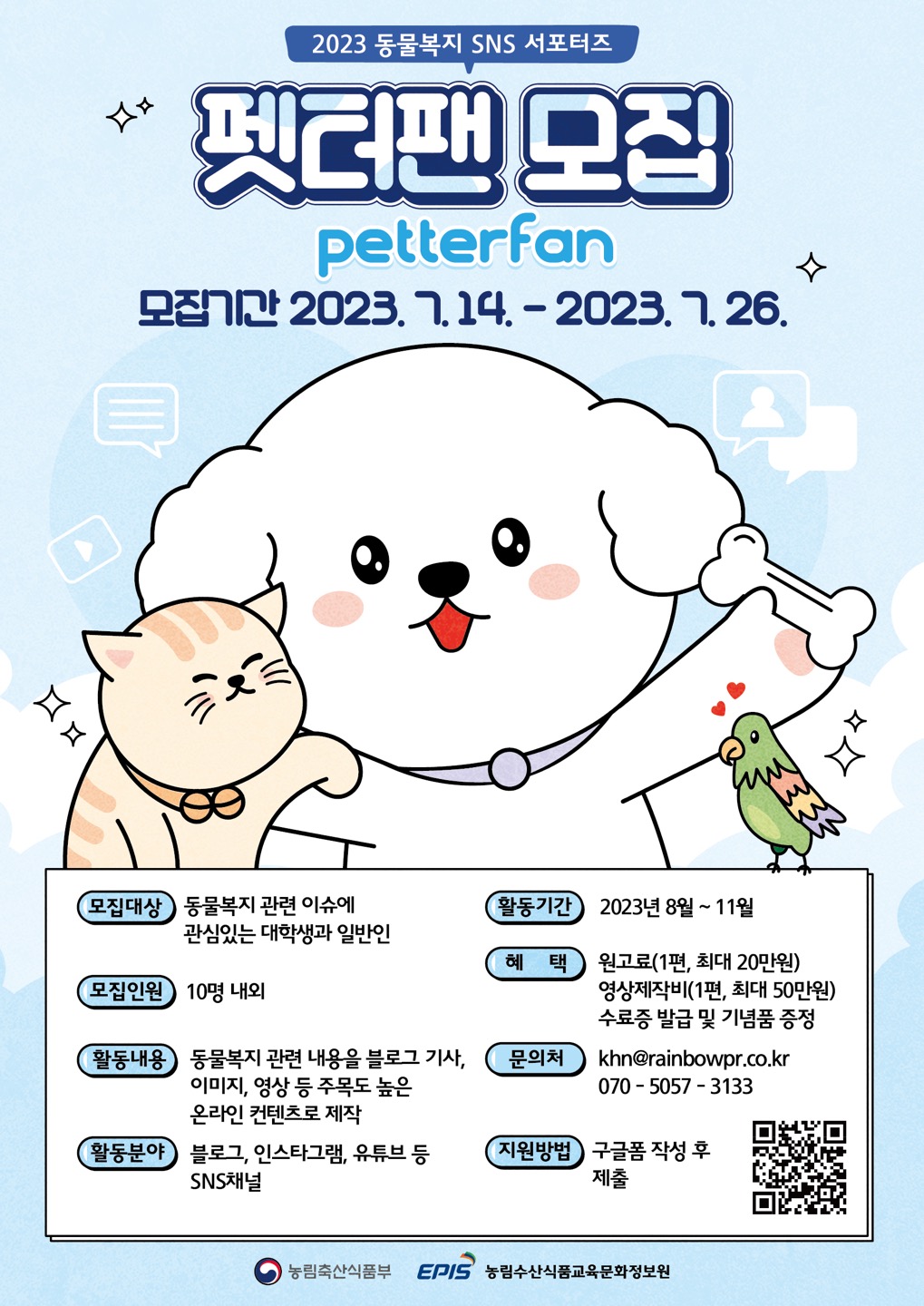 2023년 동물복지 SNS 서포터즈 펫터팬(petterfan)을 모집합니다!