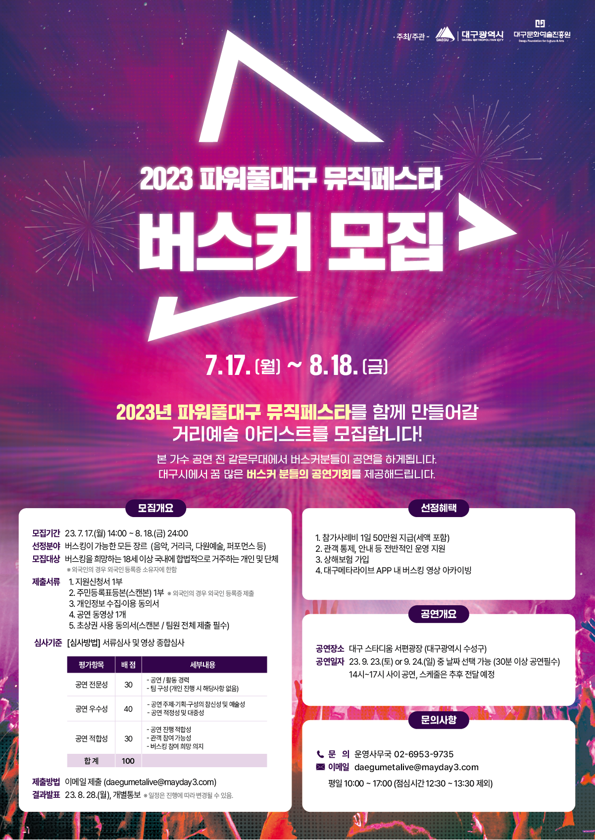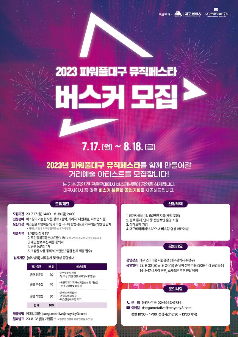 [붙임] 2023 파워풀대구 뮤직페스타 버스커 모집 포스터