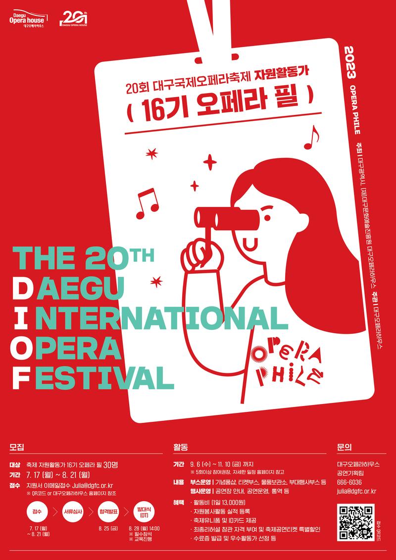 ○ 주최사 / 활동명 대구광역시, (재)대구문화예술진흥원 대구오페라하우스 / 20회 대구국제오페라축제 자원활동가 16기 오페라 필