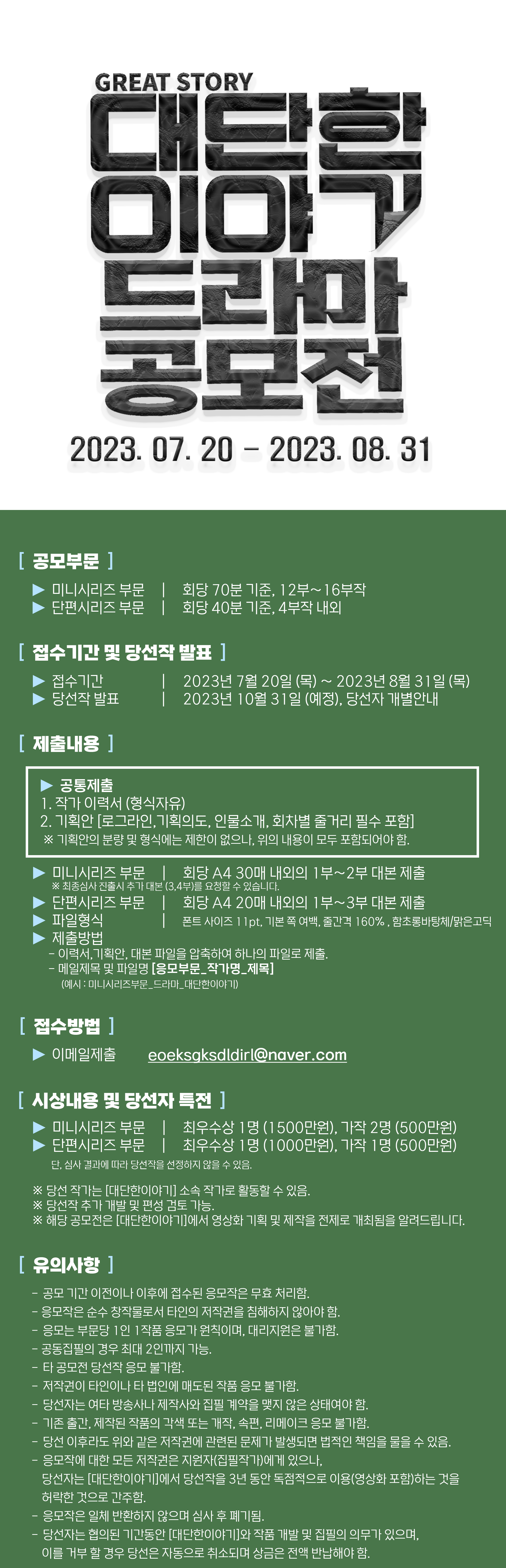 - 당선 작가는 [대단한이야기] 소속 작가로 활동할 수 있음.