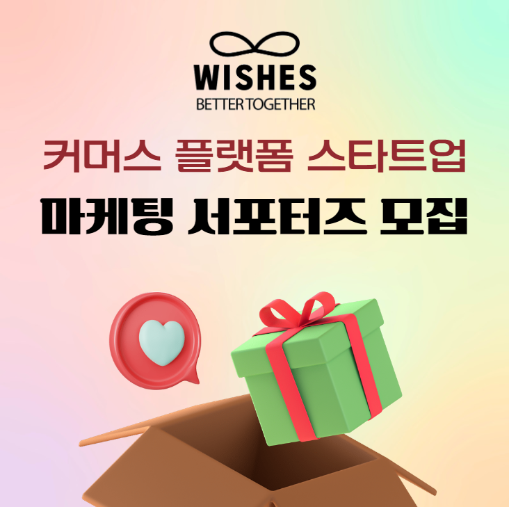 [위시즈 서포터즈 모집] 1. 모집 대상 1) 서울대 경영대학원 실무진과의 피드백과 컨펌을 통해 마케팅을 배우고 싶은 사람 2) 이커머스 플랫폼, 크라우드 펀딩 분야 마케팅에 관심이 있는 사람 3) 정부 지원을 받는 단단한 스타트업에서 성장을 함께 경험하고 싶은 사람