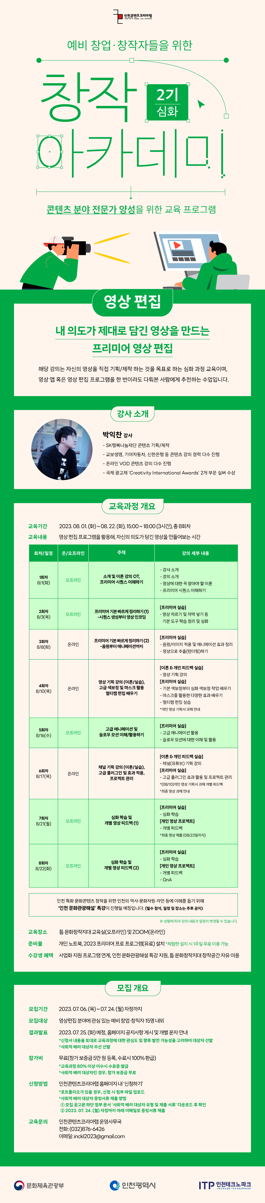 ▶ 교육문의: 인천콘텐츠코리아랩 운영사무국 032-876-6426 / 010-9094-5670 inckl2023@gmail.com**