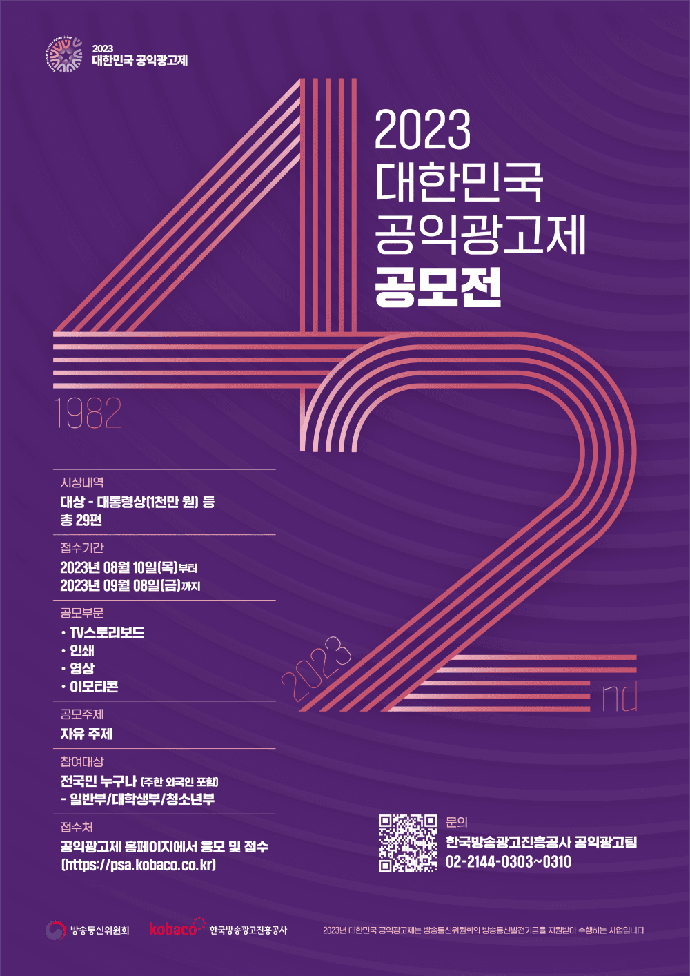 - 응모자는 공모전의 저작권과 관련한 이의 사항이 있을 경우 한국방송광고진흥공사 공익사업국 공익광고팀을 통해 이의신청할 수 있습니다.