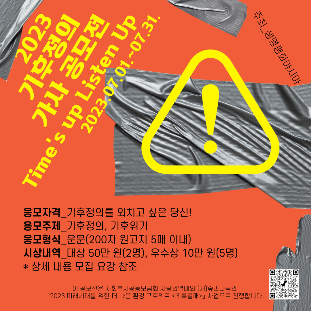 <기후정의, 타임즈 업(Time's up) 리쓴 업(Listen Up)> 가사공모전 모집 요강