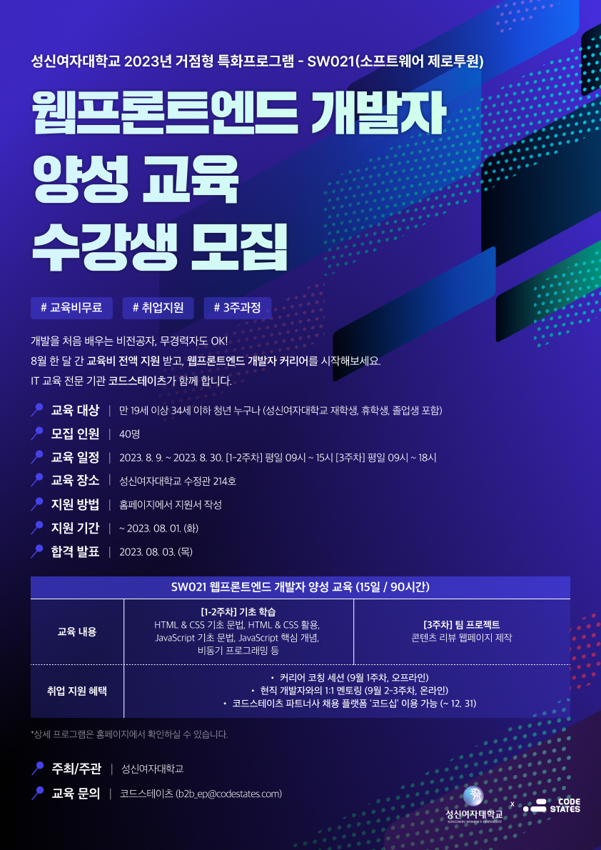 *해당 교육 프로그램은 코드스테이츠와 성신여자대학교가 함께 합니다.