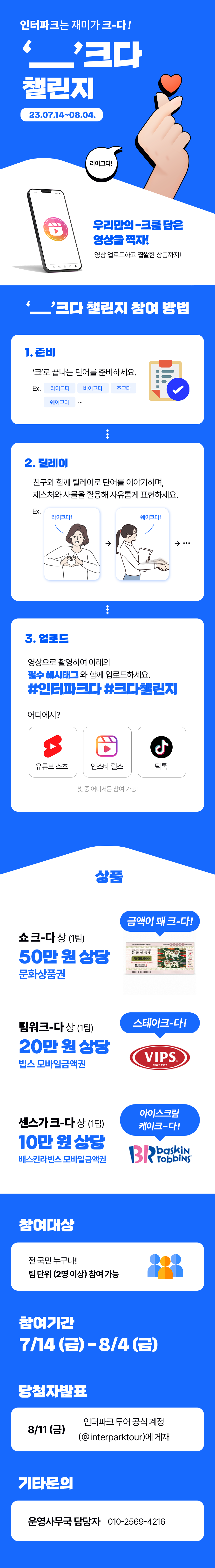- 필수 해시태그 포함 (#인터파크다 #크다챌린지)