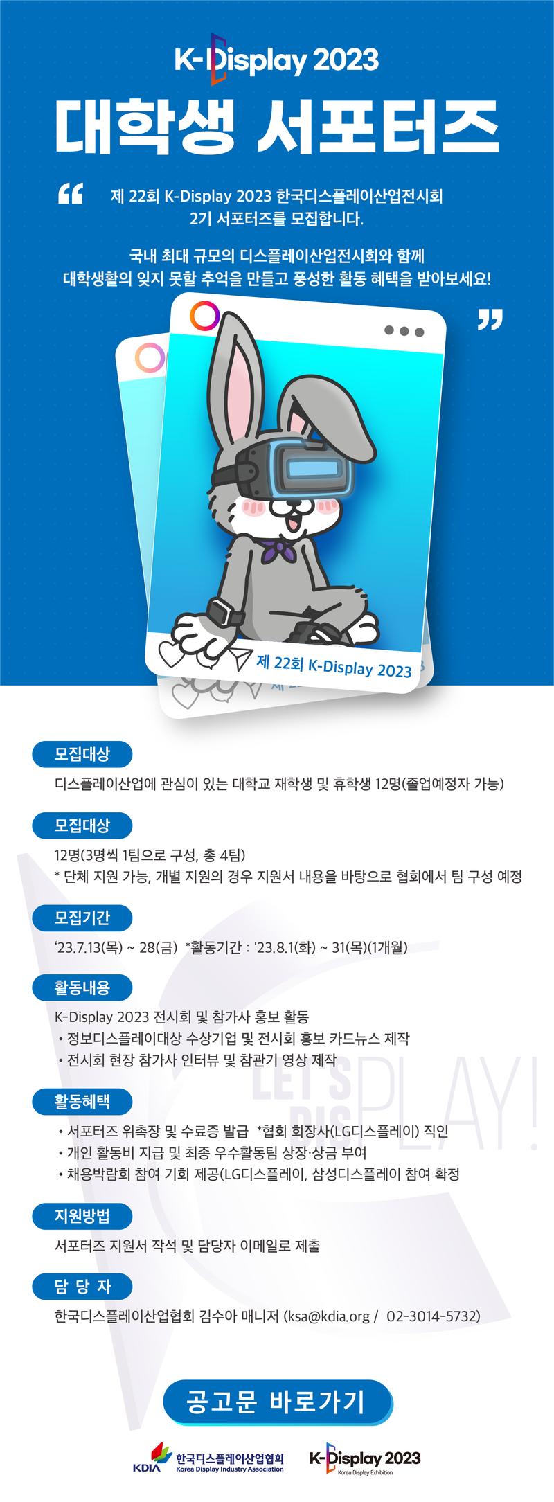 - K-Display 2023 대학생 서포터즈 모집 (\~7.28)