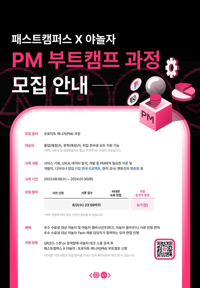 야놀자의 신입처럼 배우고, 일하는 야놀자 테크 스쿨 PM 부트캠프 OPEN!✈ 실무 교육의 대명사 패스트캠퍼스 부트캠프와 트래블 테크 기업 넘버원! 야놀자가 만났다🌟