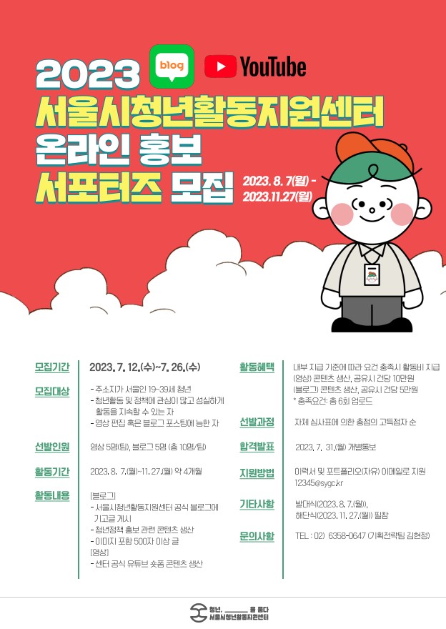 서울시청년활동지원센터 <2023년 홍보 서포터즈> 참여 안내