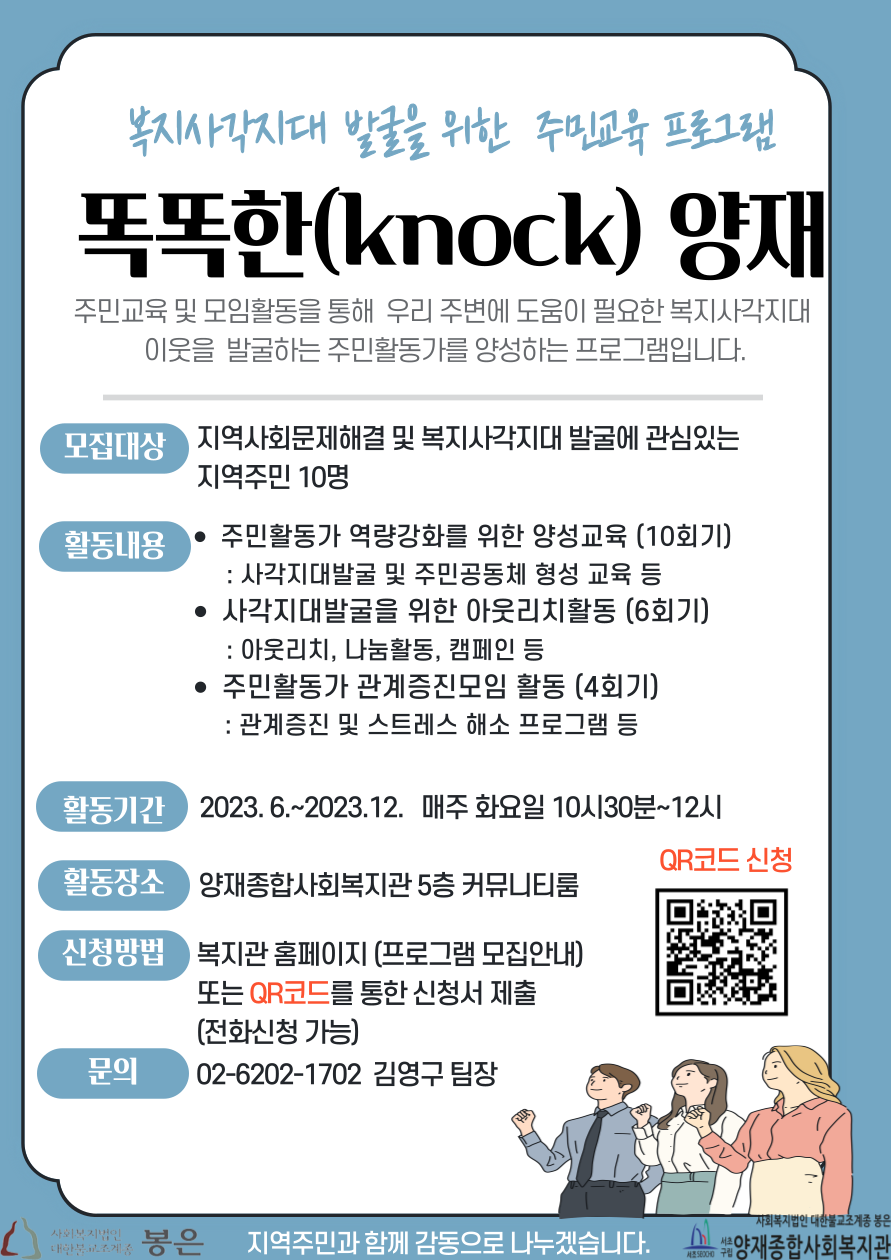 2023년 양재종합사회복지관 '똑똑한 양재'(복지사각지대발굴) 참여자 모집