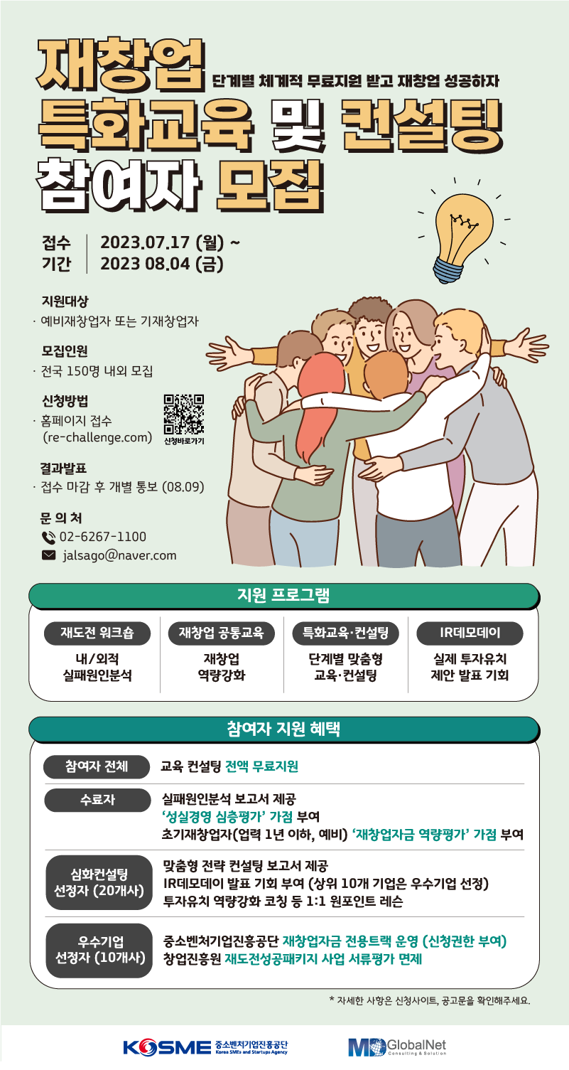 중소벤처기업진흥공단 재창업 특화교육 및 컨설팅 참여자(기업) 모집