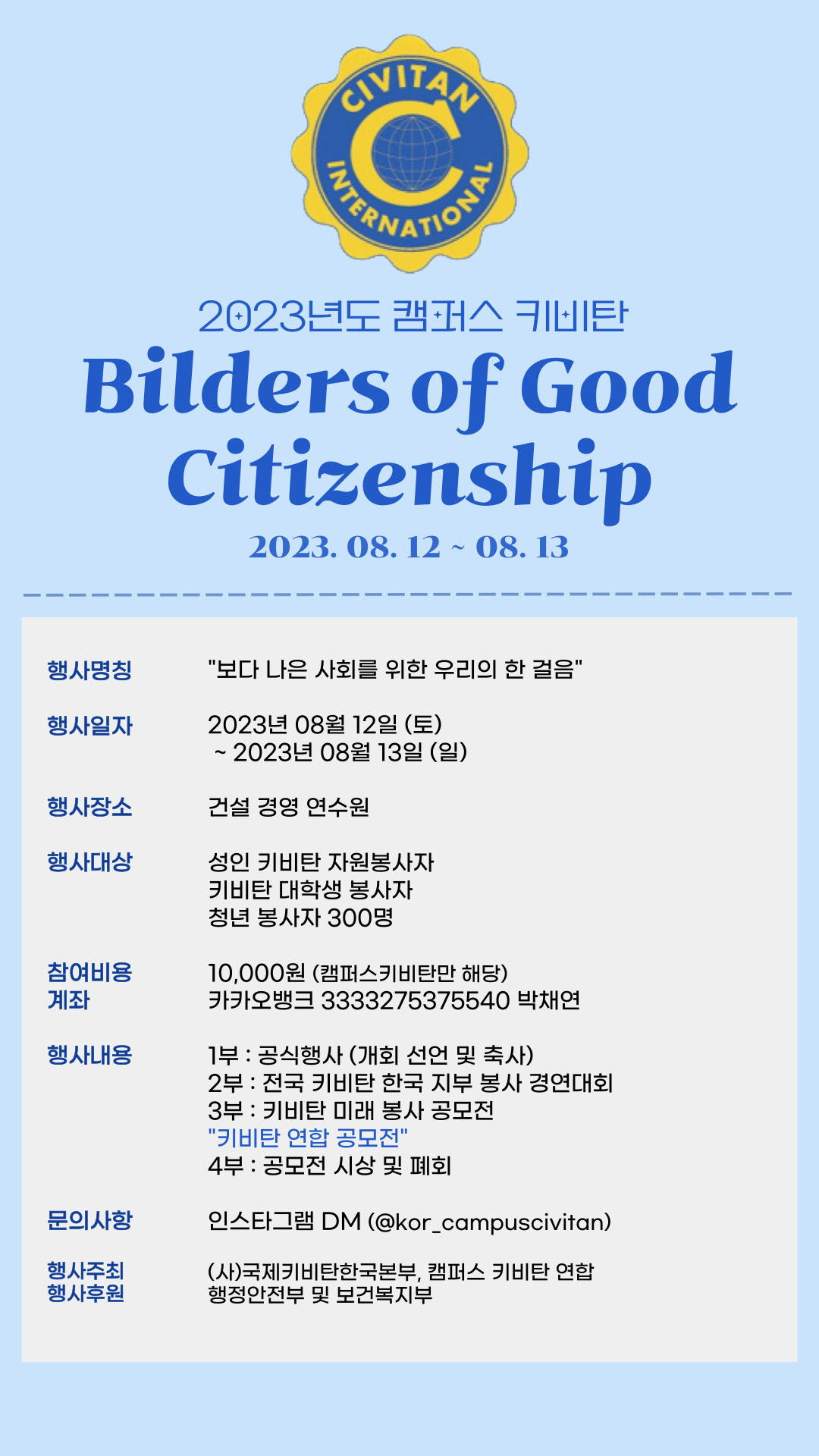 - ☏010-8872-8167 (사)국제키비탄 한국본부 캠퍼스 키비탄 부회장 김민제