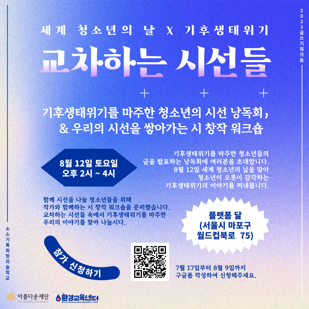 [세계 청소년의 날] 교차하는 시선들 낭독회 X 시 창작 워크숍