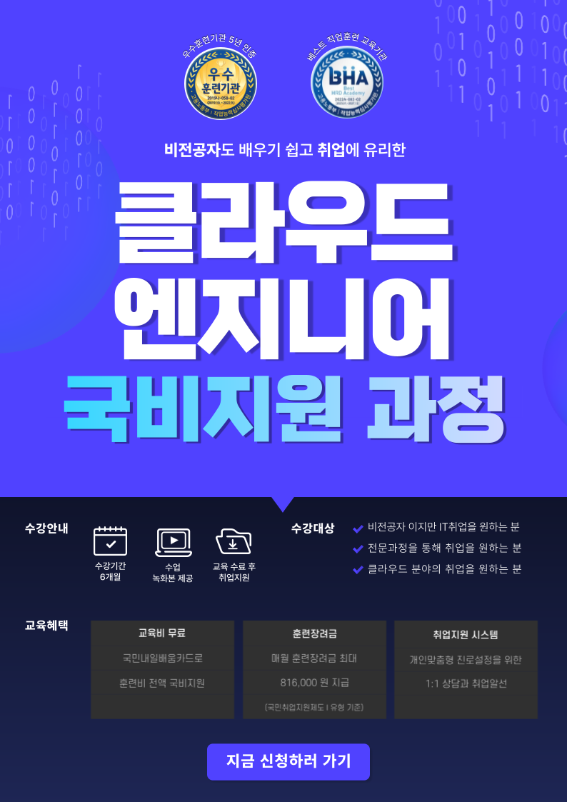 클라우드 엔지니어 / 데브옵스 엔지니어 취업 국비지원 과정! 100% 무료