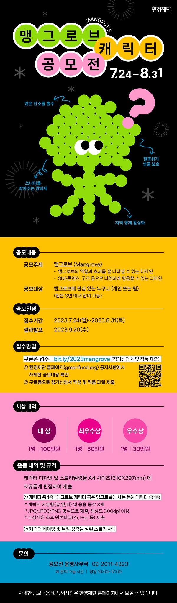 - 결과 발표: 2023.9.20(수), 환경재단 홈페이지 및 SNS에 발표