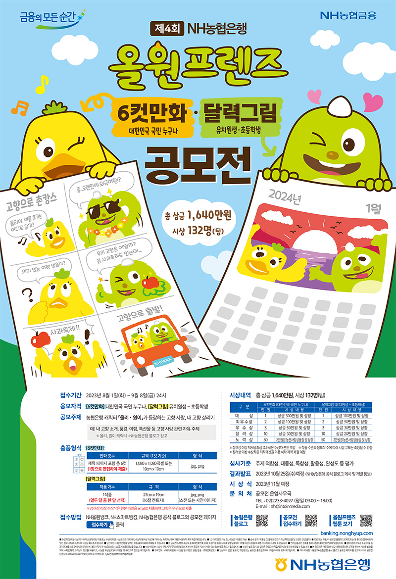 제4회 NH농협은행 올원프렌즈 6컷만화·달력그림 공모전