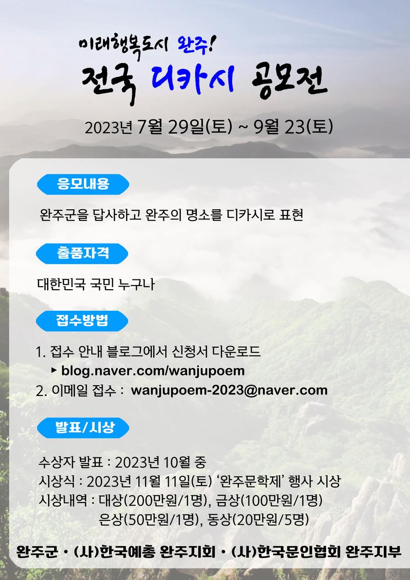 ● 문의 - 한국문인협회 완주지부(wanjupoem-2023@naver.com)