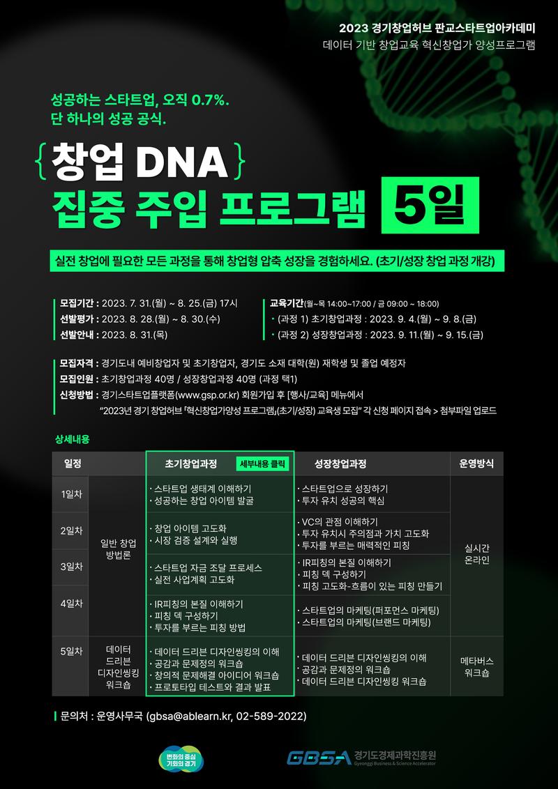 ▶교육 일정 :[초기창업과정] 2023. 09. 04 (월) \~ 09. 08 (금)