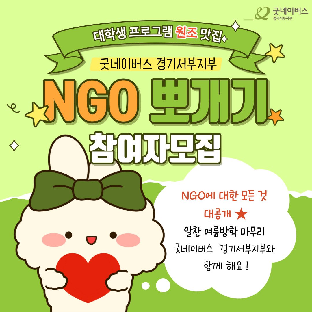 NGO에 대한 모든 것을 알고싶다 ! 검색으로는 찾을 수 없는 라이브한 NGO 이야기를 듣고 싶다 ! 하시는 분들은 NGO 뽀개기에 많은 신청 부탁드립니다 :)