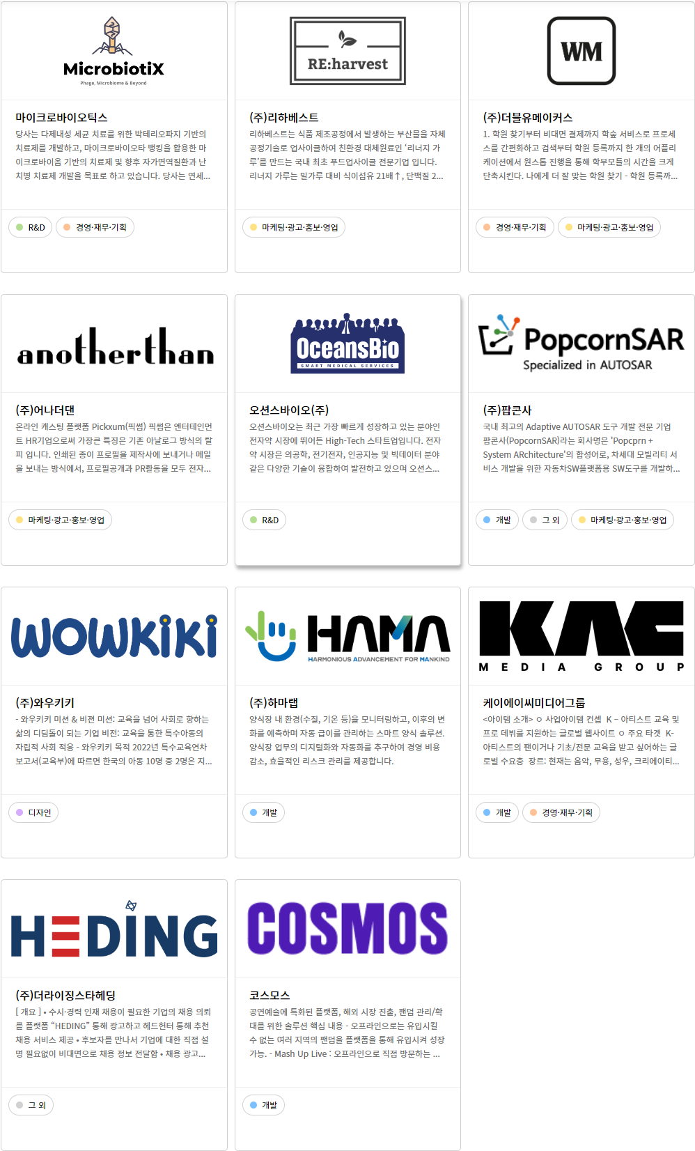 ◆ 지원내용 - 스타트업 채용/전시/체험 부스 참여 기회 제공 - 스타트업 채용/면접 참여 기회 제공 - 스타트업 대상 HR 전문가 특강 및 구직자 대상 면접 전문가 특강 - 펄스널컬러 진단\, 메이크업\, 프로필 사진 촬영 등 참여 기회 제공 * 후원사 이벤트: 윤디자인그룹 MBTI 폰트 추천 및 폰트 제공, 제네시스랩 뷰인터HR AI 면접 체험 등