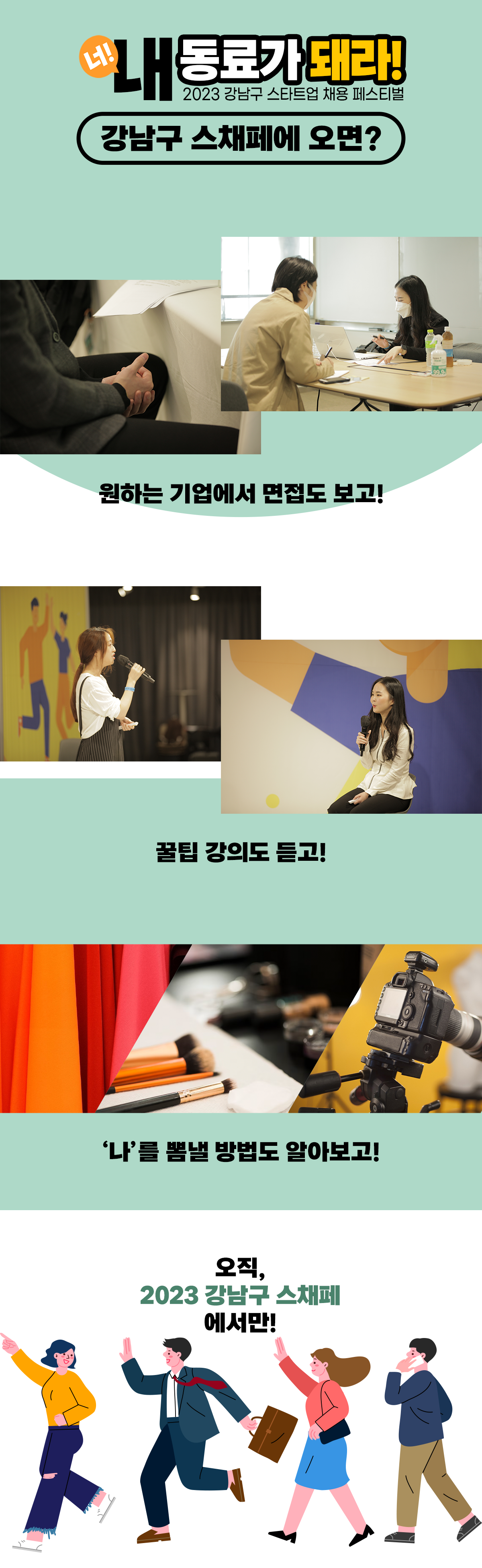 강남구에서는 스타트업의 채용 어려움을 해소하고, 맞춤형 일자리 창출을 도모하기 위하여 스타트업 인재 매칭의 장,「2023 강남구 스타트업 채용행사」를 개최하고자 하오니 스타트업에 관심이 있는 구직자 및 스타트업 관계자 여러분의 많은 관심과 참여를 바랍니다.