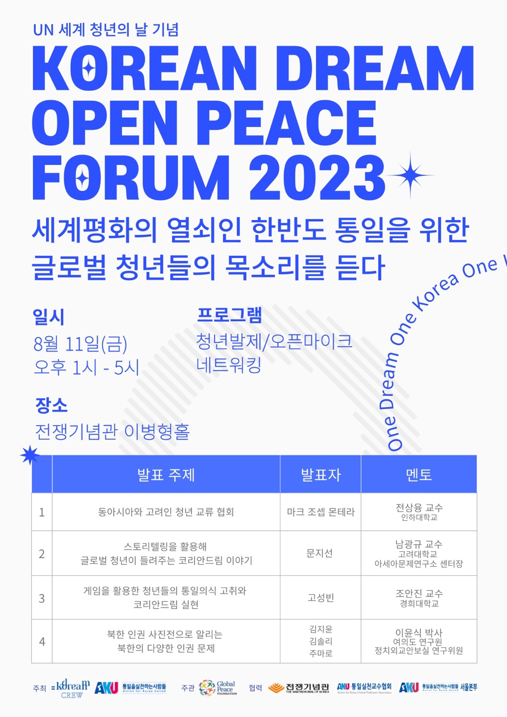 코리안드림 오픈 평화 포럼에 여러분을 초대합니다! 📢신청링크 https://bit.ly/KoreanDreamOpenPeaceForum
