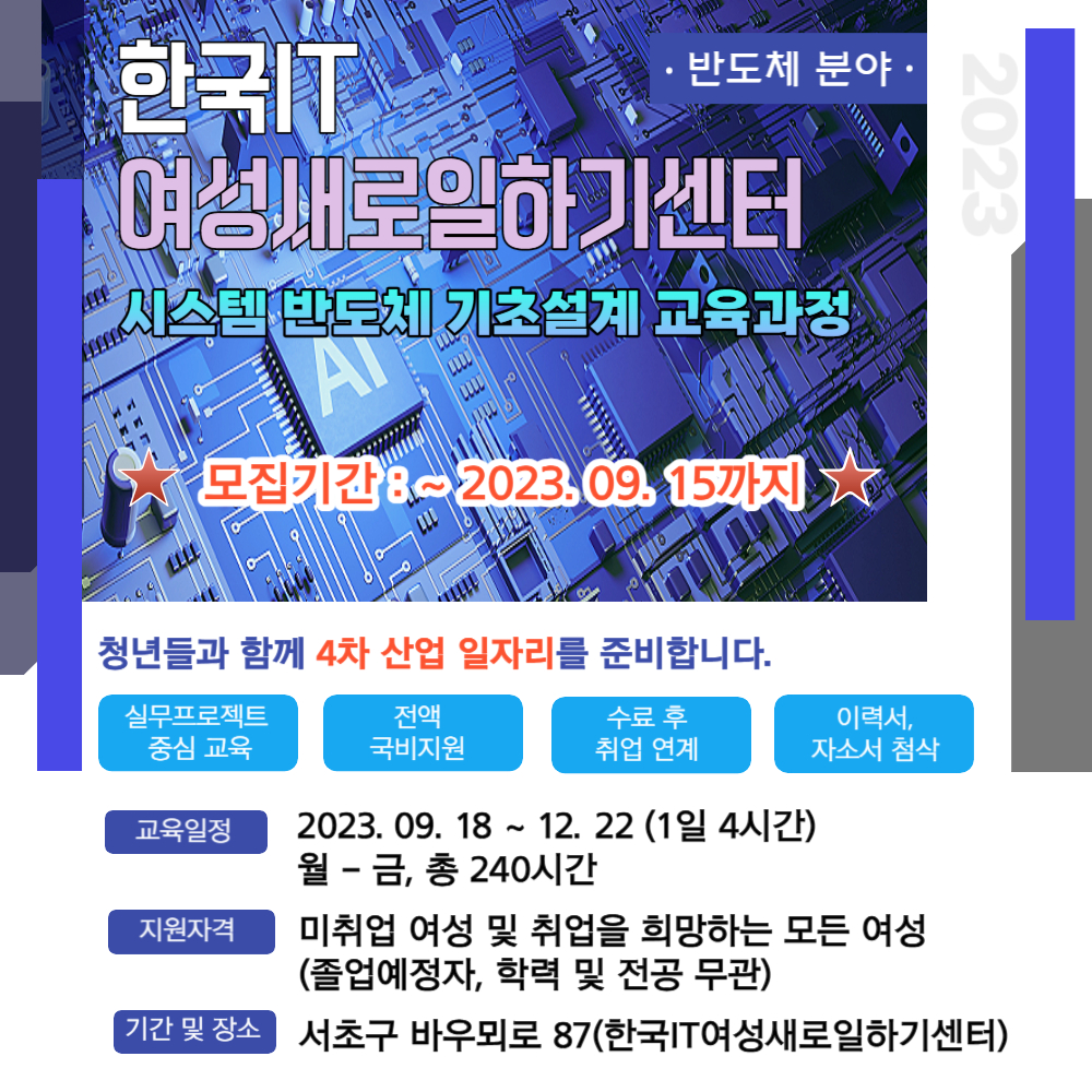 최고의 반도체 기초설계 교육을 통해 당신의 미래를 밝히는 일정을 시작해보세요. 우수한 기회를 놓치지 마시고 지금 지원서를 작성하여 보내주시기 바랍니다. 해외에서도 인정받는 반도체 설계 전문가가 되기 위한 첫 걸음, 지금 시작합니다!