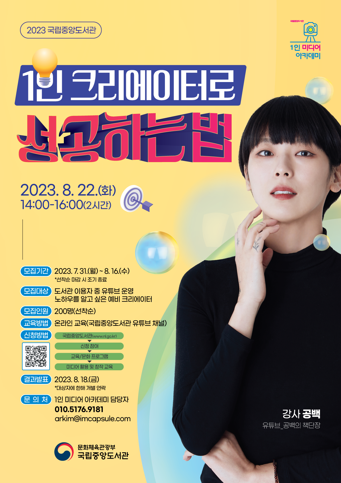 [문의] - 1인 미디어 아카데미 교육 담당자 (전화) 010-5176-9181 (이메일) arkim@imcapsule.com